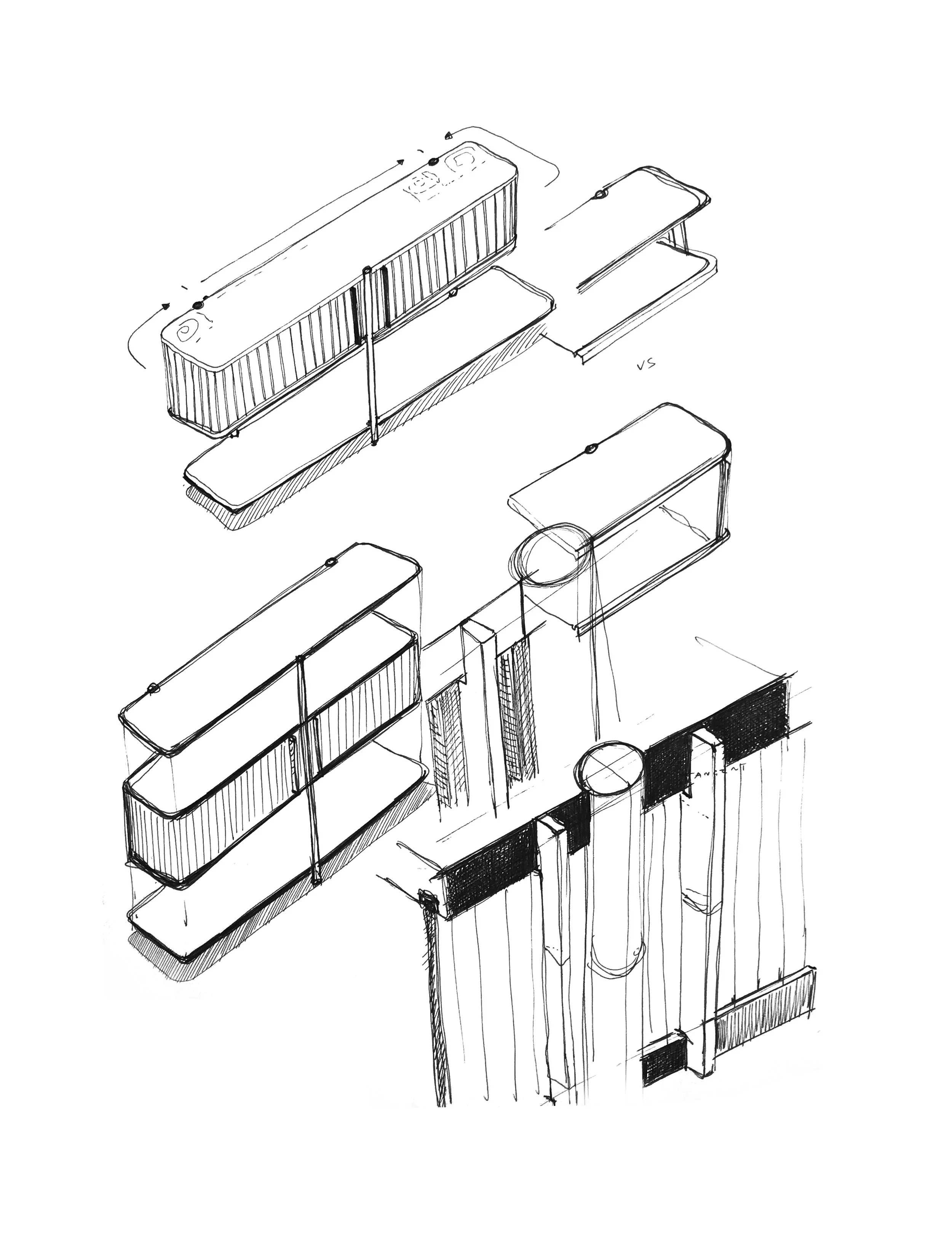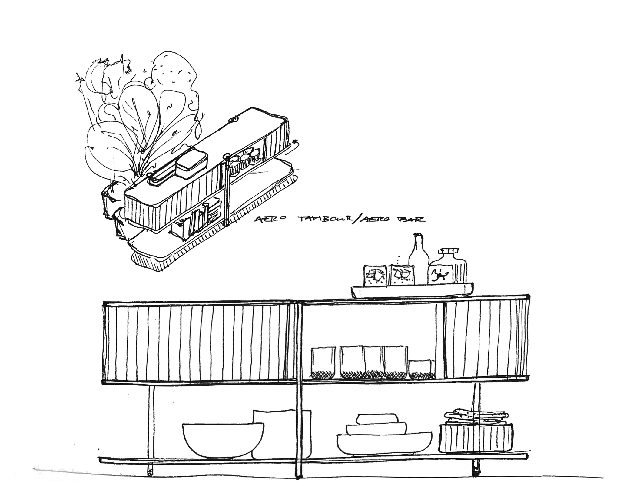 Scenographic presence in the living or dining room, the bar cabinet Aero B shares the same lightness of the bookcase, concealing a container through shutter doors that slide along the perimeter, offering a dynamic alternation of full and empty spaces.